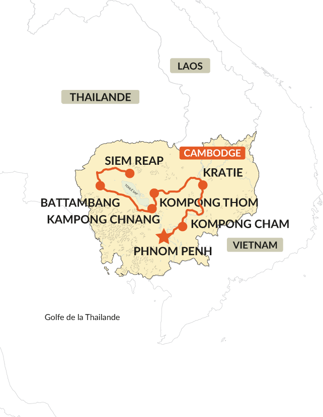Un voyage au rythme modéré, d’une capitale à une autre, mettant en avant, les monuments de la capitale, la campagne profonde du Cambodge